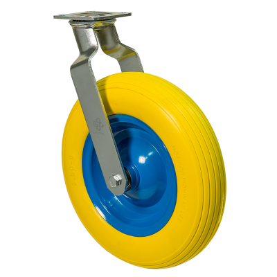 Колеса из полиуретана расчитаны на передвижение до 4 км/ч и не оставляют следов на поверхности. Изделия в кронштейнах СТАНДАРТ выдерживают нагрузку до 350 кг в зависимости от диаметра колеса и могут поставляться с подшипником скольжения, роликовым или шариковым/шариковыми подшипниками. Полиуретановые колеса для тележек и другого оборудования применяются, как правило, внутри помещения, но некоторые серии колес могут эксплуатироваться и вне помещения на качественном асфальте, рифленом металле.