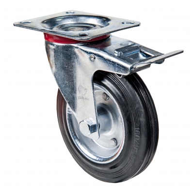 Колеса с резиновой шиной используются на различных тележках, а также баках ТБО и другом оборудовании. Резиновые промышленные колеса имеют низкую цену и среднюю грузоподъёмность. Мягкий ход и низкий шум. Могут оставлять следы на светлом покрытии.